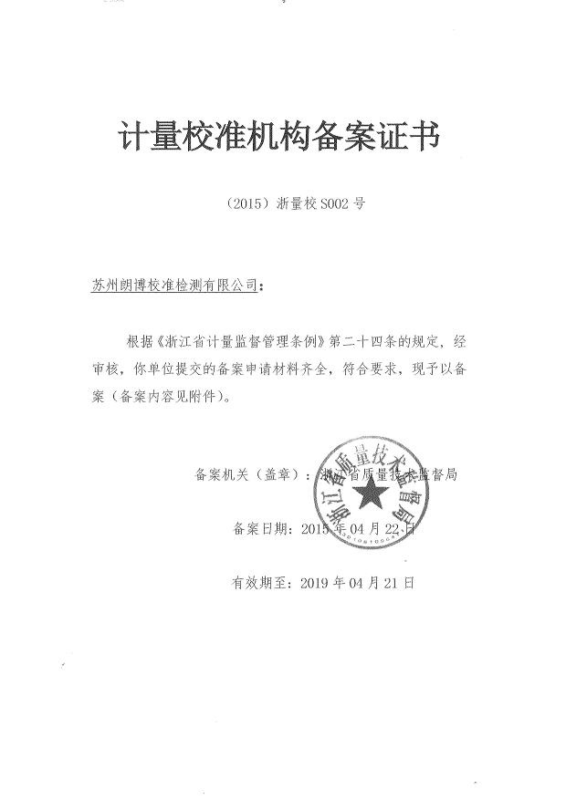 寧波朗博計(jì)量檢測有限公司是寧波計(jì)量檢測、寧波儀器檢測、寧波儀器校準(zhǔn)、寧波計(jì)量檢測、寧波儀器校正、寧波儀器計(jì)量校驗(yàn)的計(jì)量校準(zhǔn)檢測技術(shù)服務(wù)公司。寧波朗博計(jì)量檢測有限公司屬于朗搏校準(zhǔn)檢測集團(tuán)公司,集團(tuán)公司另外下轄蘇州朗博校準(zhǔn)檢測有限公司和北京朗博校準(zhǔn)檢測有限公司,另外在南京、揚(yáng)州、南通、廣州東莞、山東濰坊、安徽合肥、越南北寧等地設(shè)置辦事機(jī)構(gòu)。朗博校準(zhǔn)檢測集團(tuán)通過中國合格評定國家認(rèn)可委員會(CNAS)及國防科技工業(yè)實(shí)驗(yàn)室認(rèn)可委員會(DILAC)認(rèn)可與授權(quán),專業(yè)從事計(jì)量校準(zhǔn)、檢測(包含軍用設(shè)備檢測)和維修服務(wù)的綜合實(shí)驗(yàn)室,可以開展900多個項(xiàng)目的校準(zhǔn)和檢測技術(shù)服務(wù),所出具的校準(zhǔn)證書及檢測報(bào)告獲得國際實(shí)驗(yàn)室認(rèn)可合作組織多邊協(xié)議(ILAC-MRA)成員中48個國家和地區(qū)的認(rèn)可。校準(zhǔn)檢測,實(shí)驗(yàn)室建有幾何量、熱工、力學(xué)、電磁、無線電、時間頻率、振動、聲學(xué)、光學(xué)、理化等專業(yè)校準(zhǔn)實(shí)驗(yàn)室。實(shí)驗(yàn)室嚴(yán)格按照國家相關(guān)檢定規(guī)程、校準(zhǔn)規(guī)范、國家標(biāo)準(zhǔn)或儀器說明書技術(shù)指標(biāo)的要求等進(jìn)行全面的校準(zhǔn)檢測;實(shí)驗(yàn)室的校準(zhǔn)檢測工作完全滿足ISO/IEC17025和ISO9000的要求,實(shí)驗(yàn)室所出具的第三方公正的校準(zhǔn)證書及檢測報(bào)告獲得國際實(shí)驗(yàn)室認(rèn)可合作組織多邊協(xié)議(ILAC-MRA)成員中48個國家和地區(qū)的認(rèn)可。